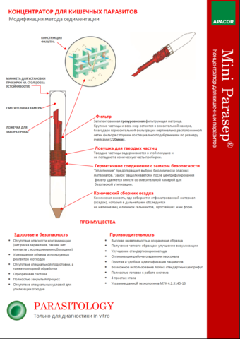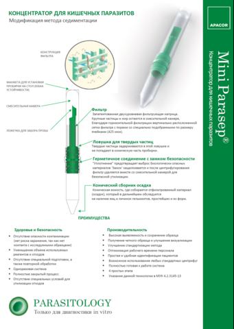 Концентратор для кишечных паразитов Парасеп (Mini Parasep) для проведения копрологических исследований в биоматериале человека, 40 шт/упаковка, Великобритания (Apacor Limited).