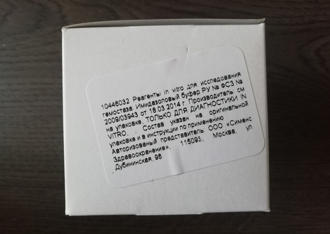 Производитель: Сименс Хелскеа Диагностикс Продактс ГмбХ, Германия/Siemens Healthcare Diagnostics Products GmbH, Germany