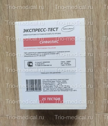 Экспресс тест ИммуноХром-антиТР-Экспресс для быстрого качественного выявления в лаборатории антител к бледной трепономе – Treponema pallidum (возбудителя сифилиса) в цельной крови, в сыворотке, в плазме крови человека