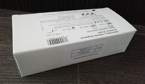 Описание: картонная упаковка, в упаковке 1000 пластиковых капилляров по 20 мкл End to end, расфасованные по 100 шт в пластиковые контейнеры