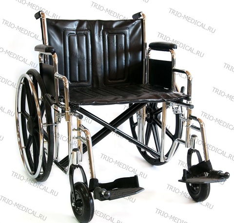 Инвалидная кресло-коляска предназначена для людей с большой массой тела. Данная модель представлена в трех вариациях — с эффективной шириной сиденья 53, 58 и 64 см, что дает возможность подобрать необходимую модификацию в соответствии с нуждами любого пользователя и клиента. Сиденье и спинка кресла-коляски сделаны из высокопрочной искусственной кожи, способной выдерживать большие нагрузки. Еще одной важной особенностью конструкции является увеличенный диаметр несущей оси задних колес, которая сделана из специального высокопрочного сплава. Колеса данной коляски оснащены усиленными цельнолитыми шинами из износоустойчивой резины, не оставляющей следов на полу.