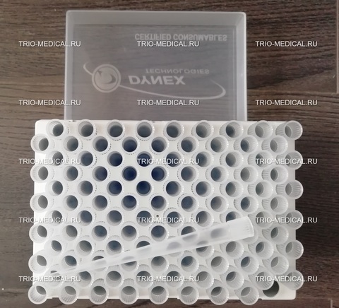 Наконечники пластиковые для реагентов, для анализаторов иммуноферментных автоматических типа «Лазурит», модель DSX-DS2 Reagent Tip в штативе, с крышкой 4 штатива по 108 шт./уп